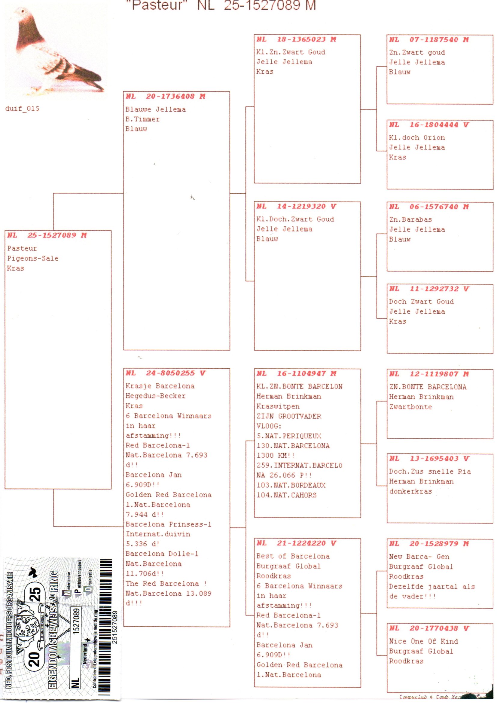 Szuper származás!!!Apai ágon a híres „Zwartgoud”-Jellema,anyai ágon pedig 6 Nemzetközi/Nemzeti Barcelóna gyöztes származásában.