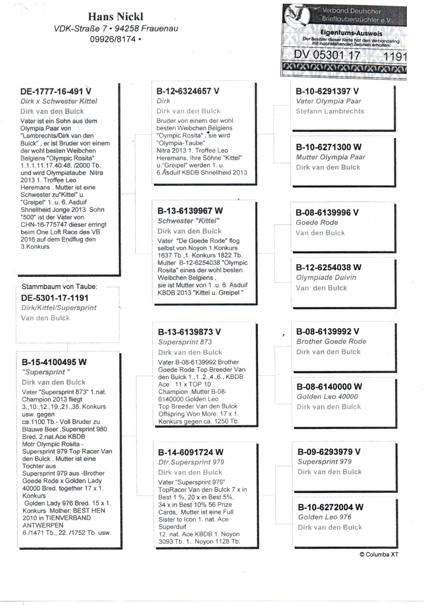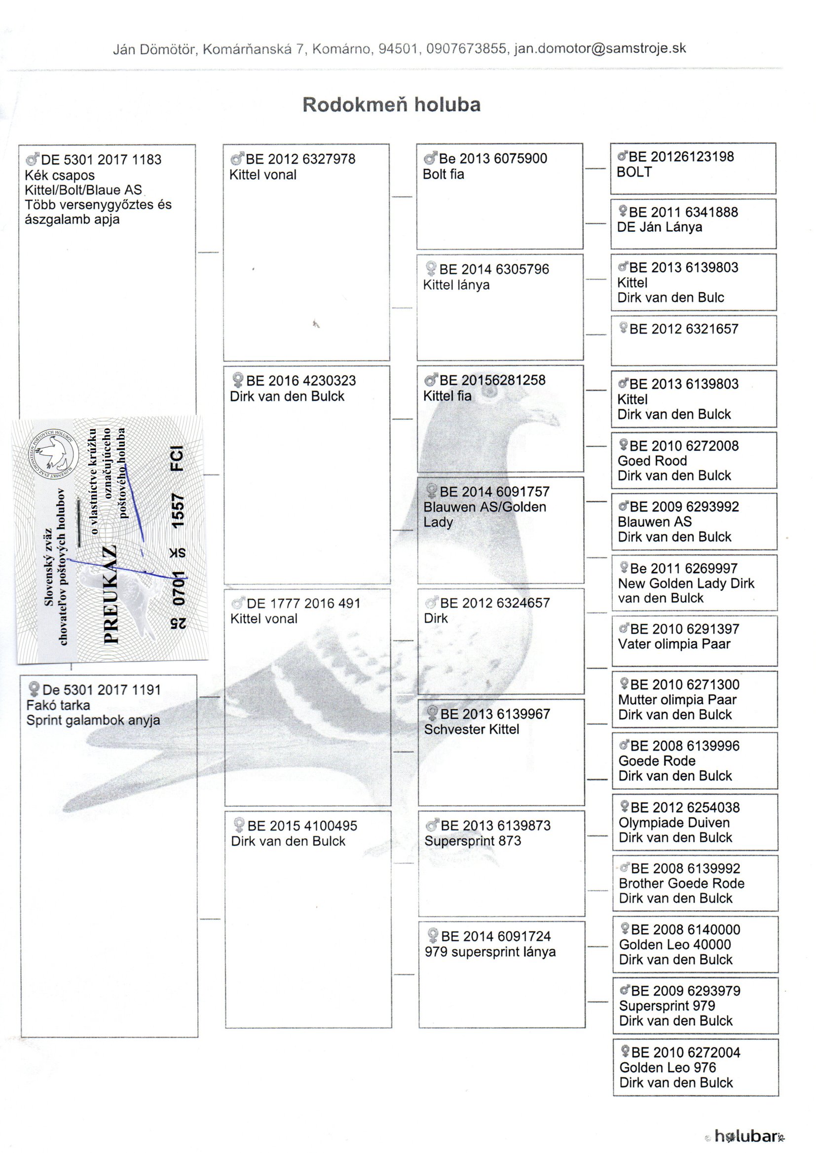 Kittel,De Jan,Goed Rood,Blauwen As,Super Sprint,Golden Leo,Golden Lady híres galambok származásában!!!!!