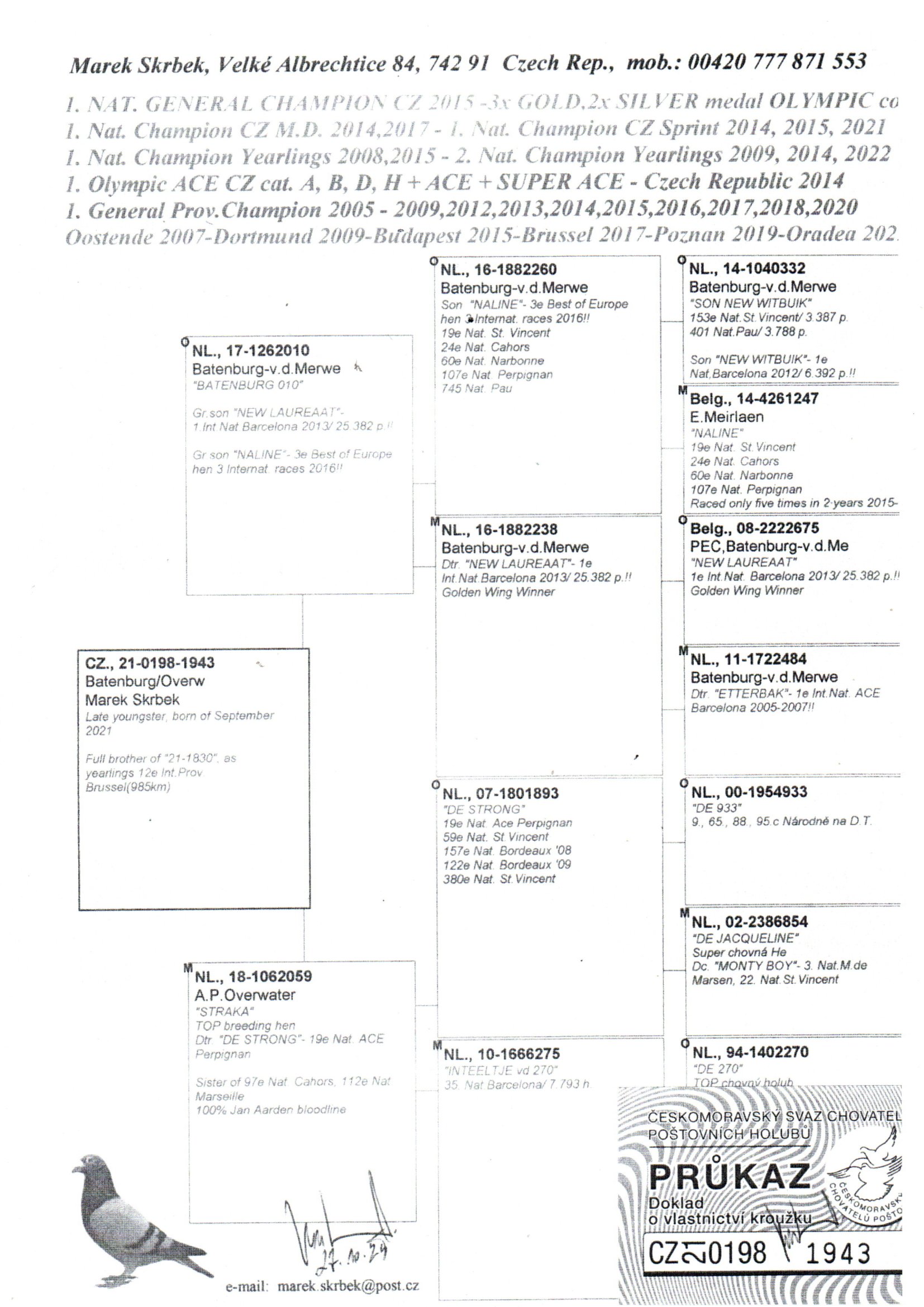 Verseny : Mikulov 1764 galamb 1. 2. 3. 4. 5. 6. 7. 8.